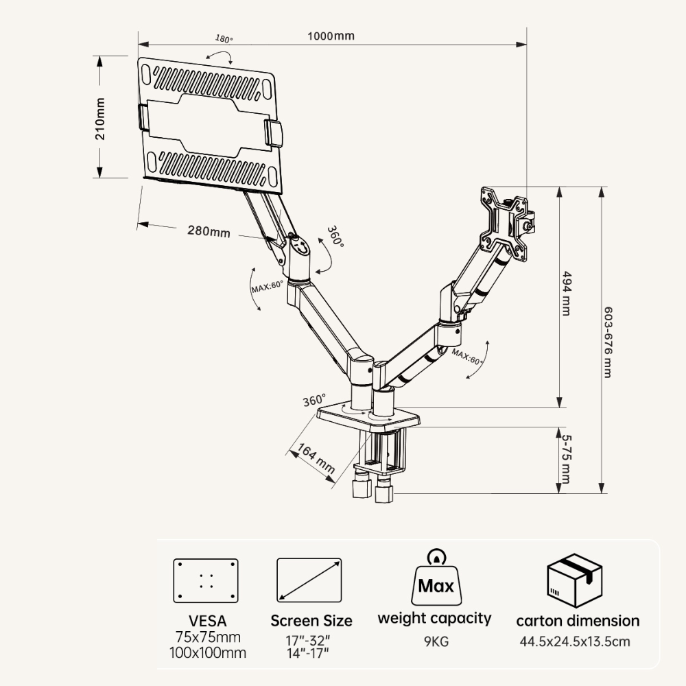 -Soporta hasta 9Kg por brazo